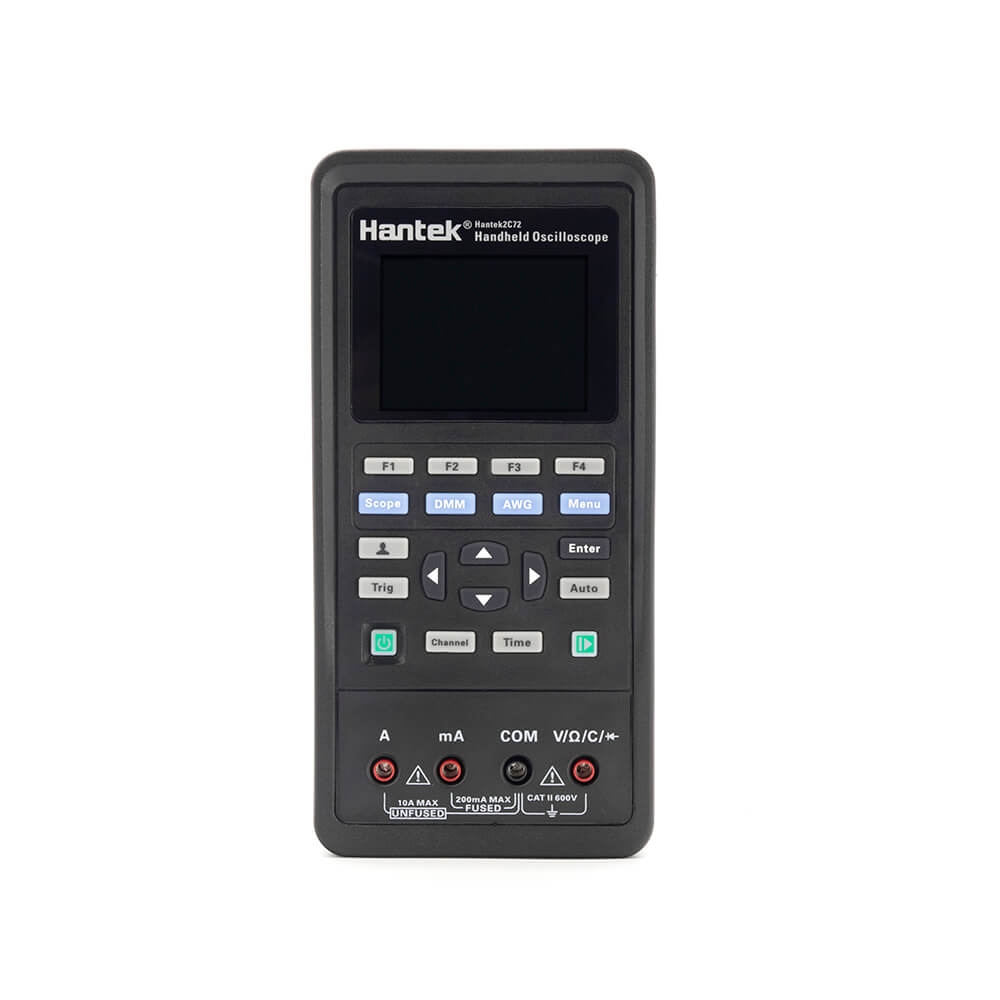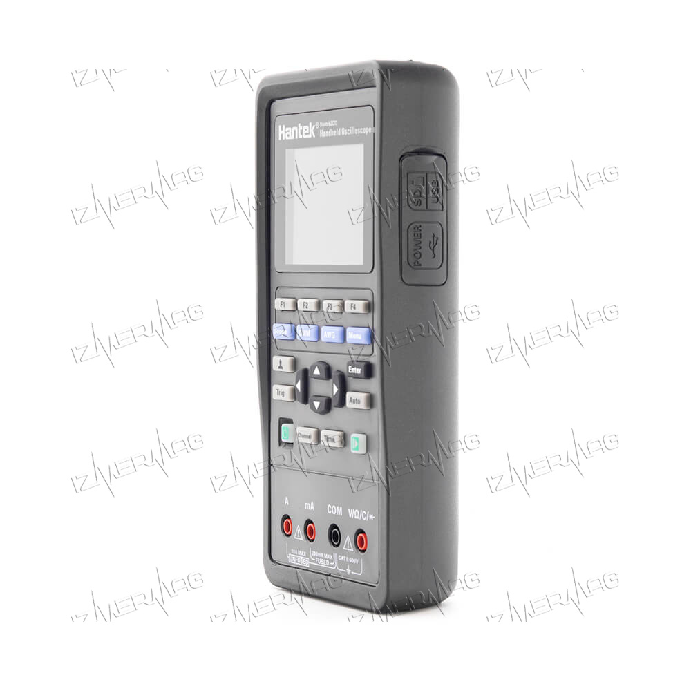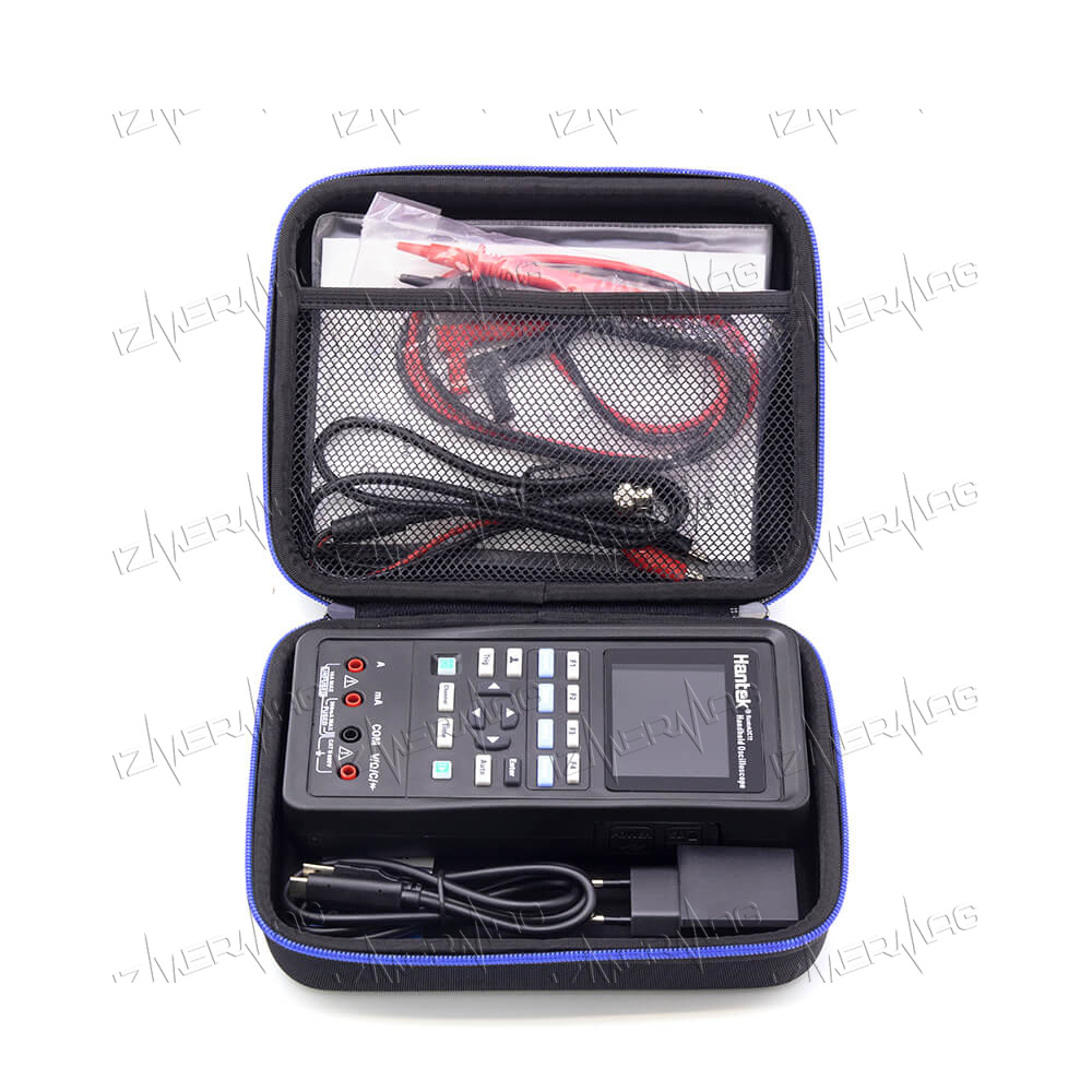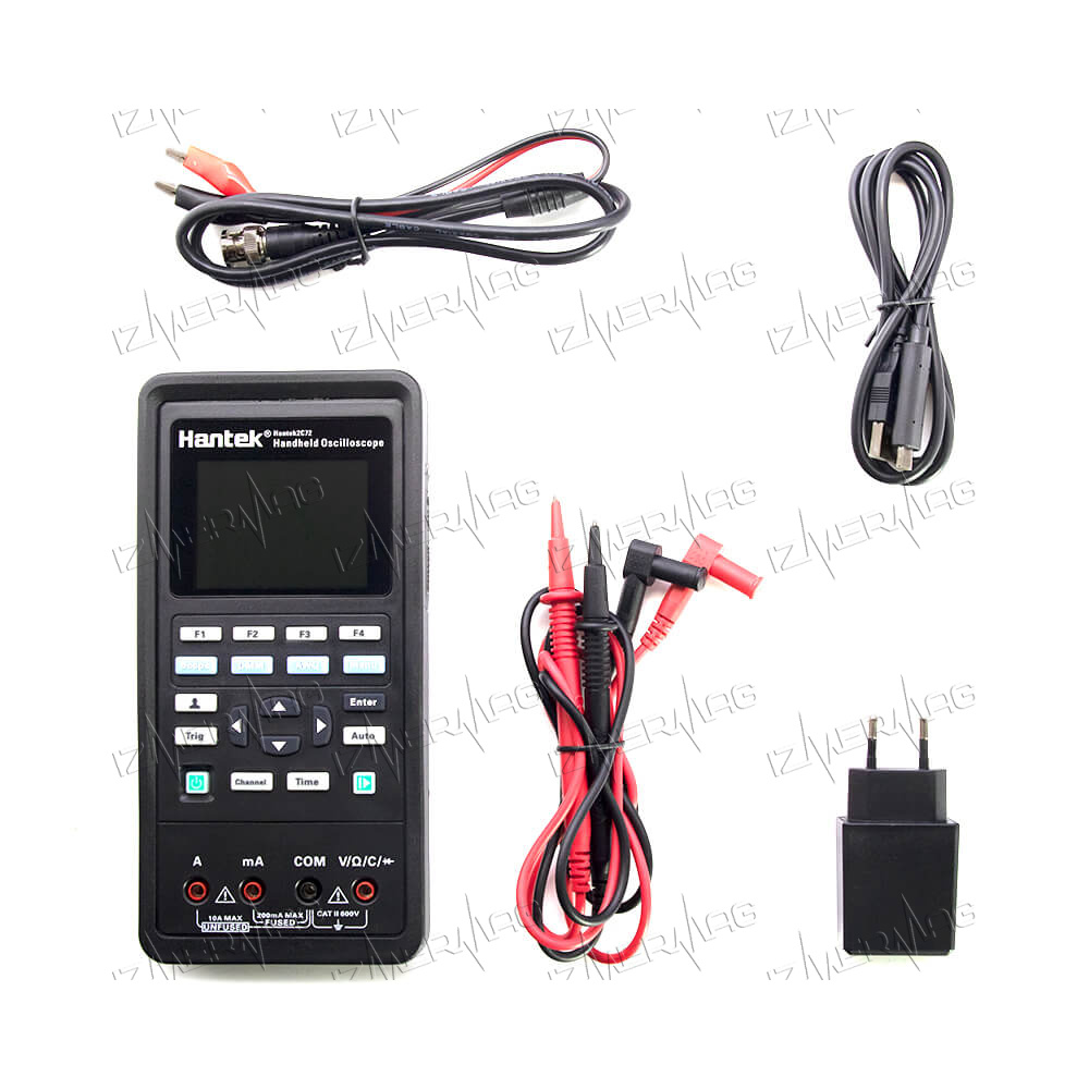 Осциллограф портативный Hantek 2C72 2-в-1 (2 канала, 70 МГц, осциллограф+мультиметр) – контрольно-измерительный прибор универсального назначения, который совмещает в себе цифровой мультиметр и осциллограф. Отличается небольшими размерами, поэтому его удобно переносить и пользоваться. При помощи данного устройства вы сможете определить переменное или постоянное напряжение, силу тока, емкость, величину сопротивления, а также продиагностировать работоспособность полупроводниковых элементов, протестировать проводимость. Прибор работает от встроенной аккумуляторной батареи, при необходимости может подключаться к компьютеру. Ноутбуку или мобильным гаджетам с помощью USB кабеля.